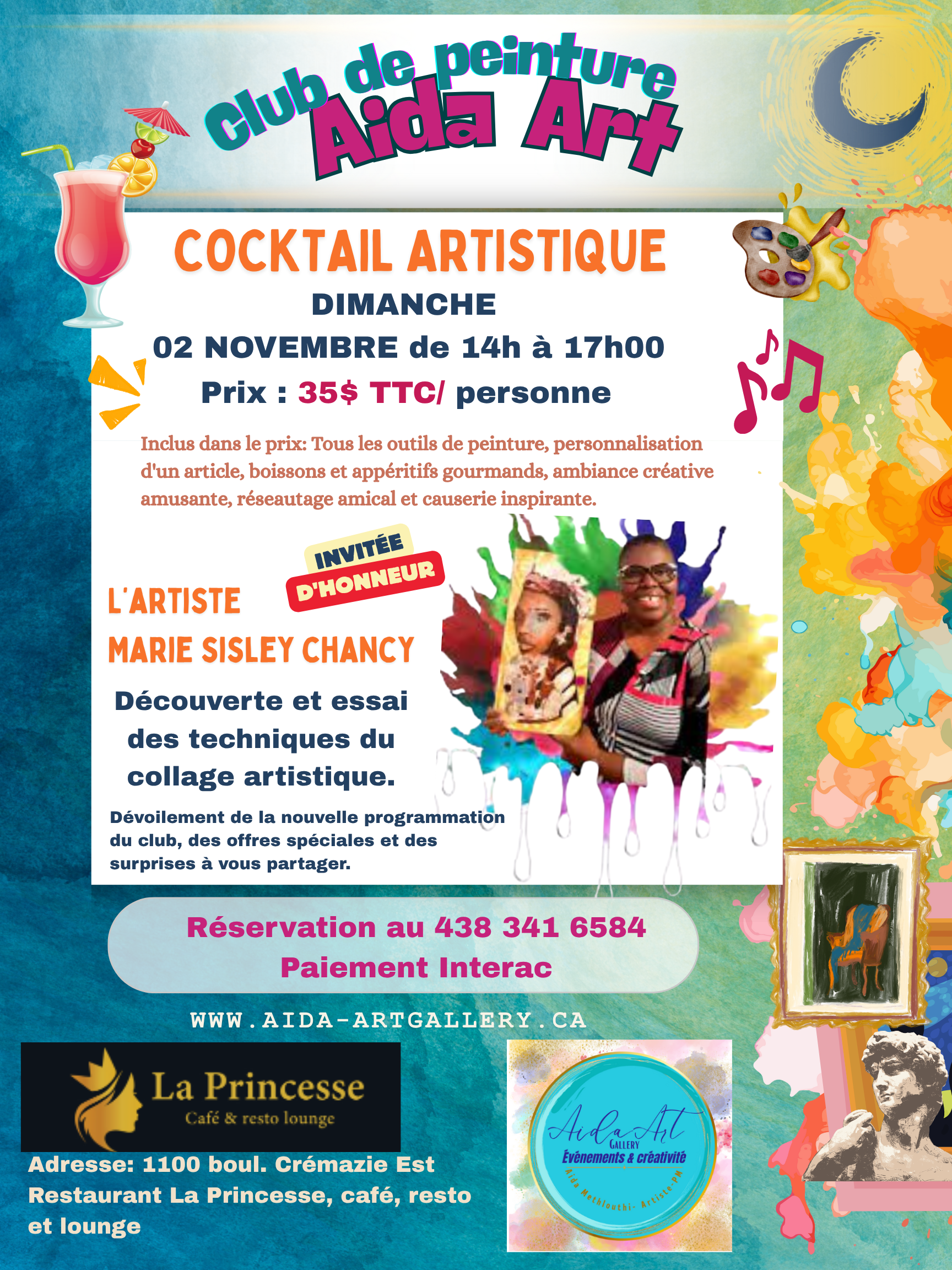 ✨ Club de peinture AidaArt vous organise une après-midi cocktail artistique haute en couleurs, en collages et en connexions inspirantes.