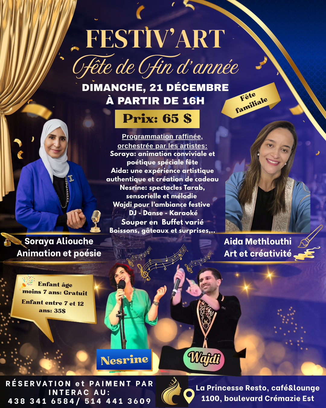 Nous vous invitons à partager un moment chaleureux et festif lors de Festiv’Art – Fête de fin d’année: